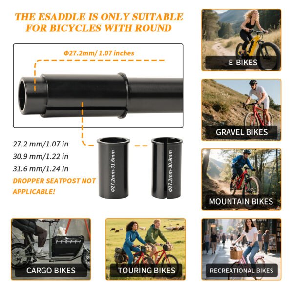 It is only suitable for bicycles with round seat posts. Compatible sizes: 27.2 mm, 30.9 mm, and 31.6 mm.